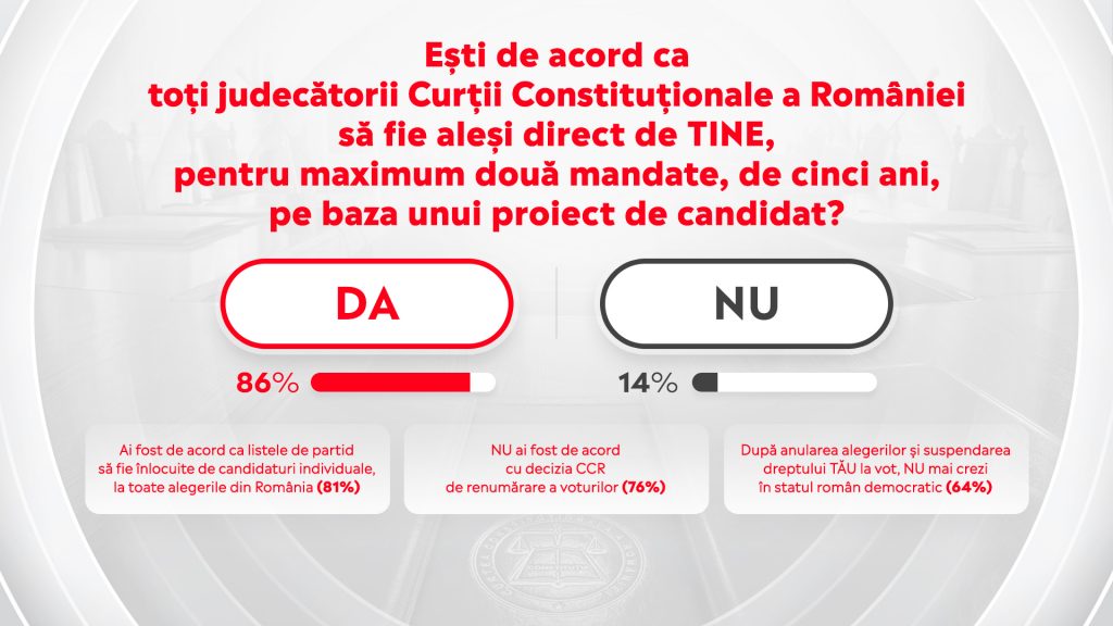 CCR este un exemplu foarte vizibil care arată nevoiaromânilor de a-i vota direct pe toți cei care iau decizii la nivel local și național Votul direct și mandatul limitat reduc cheltuielile din bugetul public și se pot aloca mai mulți bani pentru educație și apărare Proiectul de Constituție, pe care ți-l propunem,îți permite ca tu […]